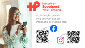 Of help ons patiënten voor te lichten over hulpvragen die bij de huisartsenspoedpost thuishoren door ze aan te moedigen ons op Facebook of Instagram te volgen. Hier delen wij tips en informatie over acute zorg. Plaats deze afbeelding op het wachtkamerscherm: